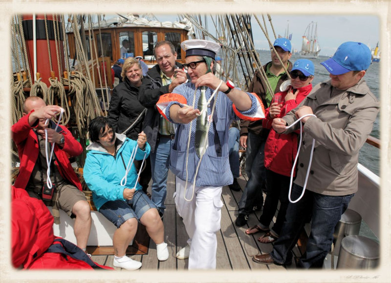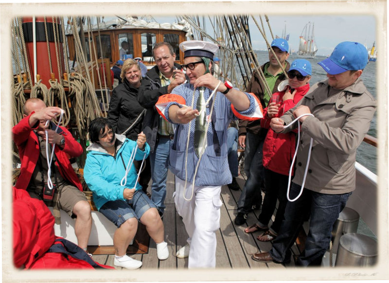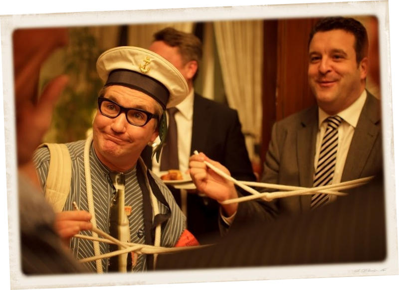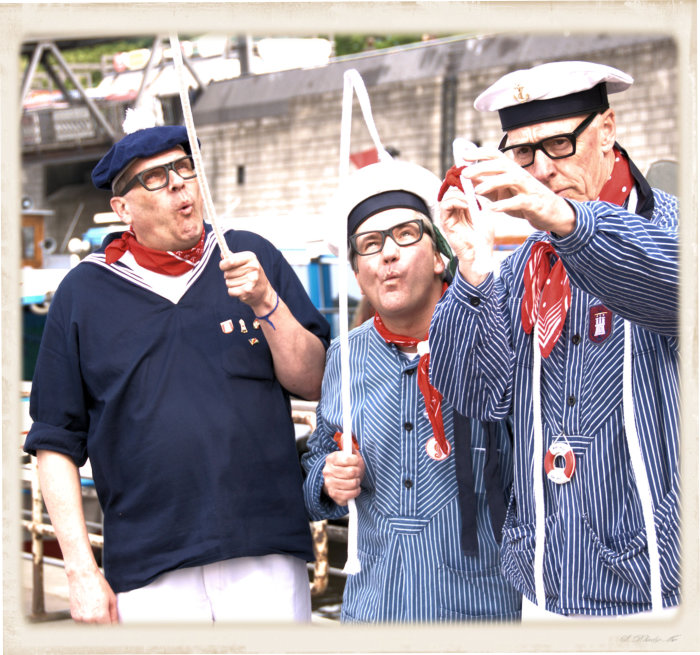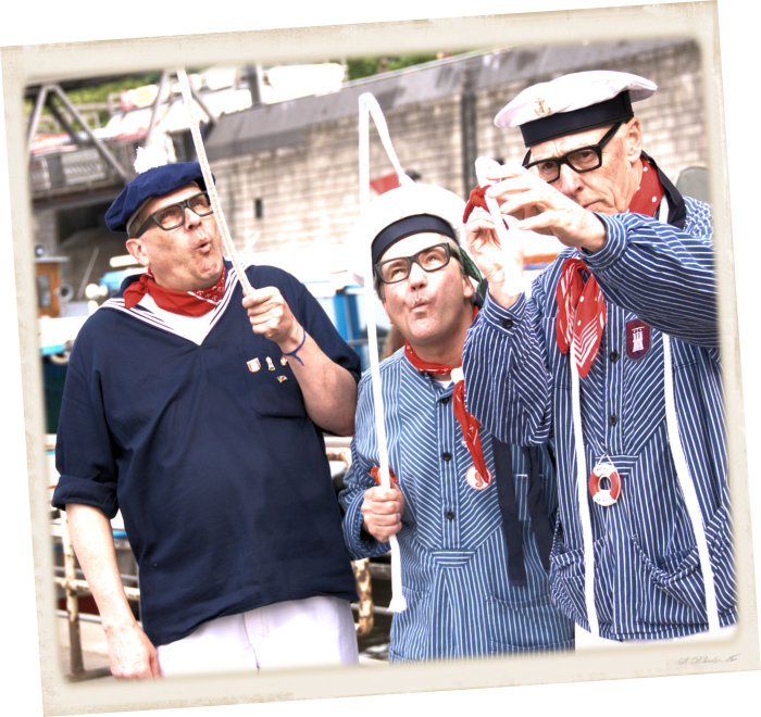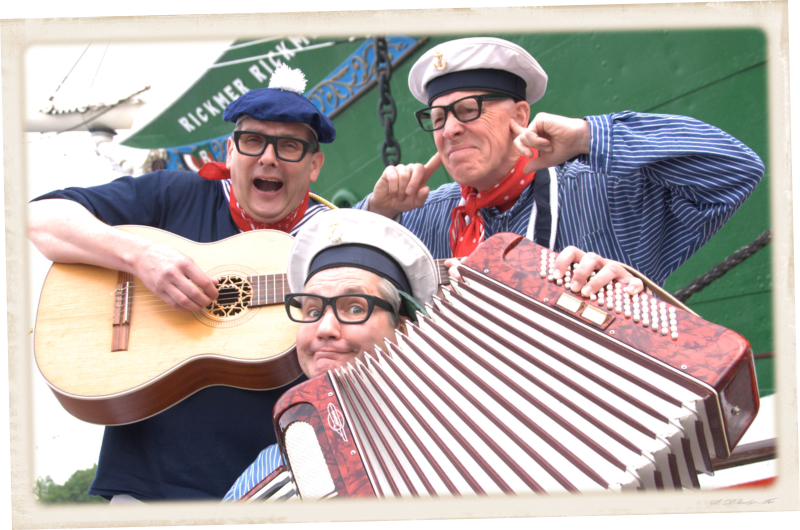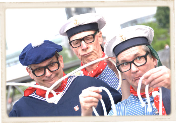 Wenn die schwermütigen Leichtmatrosen das Deck unsicher machen, knarren die Planken und die Ratten verlassen das sinkende Schiff...!Aber selbstverständlich gehen die nicht ganz seefesten Matrosen auch auf Landgang, um auf ihrer Veranstaltung maritimes Flair zu verbreiten. Dabei lassen sie sich das Ruder nicht aus der Hand nehmen...!Und immer dabei: Die Knotenschule!Wenn sich die Passagiere unter Anleitung in der Kunst des Knotenschlagens versuchen, scheinen diese Seemannsknoten einen "eigenen Willen" zu haben. Dahinter stecken jedoch Zauberei und eine Menge Spaß... …und zuguterletzt ist das Erfolgerlebnis dann doch garantiert.Der maritime Walking Act mit und von den Comedymatrosen ist ein unterhaltsamer Mix aus Comedy, Zauberei, Theater, Musik, Animation und reichlich Seemannsgarn. Die Comedy-Zauber-Animation ist absolut mobil und eignet sich für sitzende oder stehende Gästegruppen; zu Wasser und zu Land!Diverse Themen rund um die Seefahrt werden humorvoll ad absurdum geführt.Da lacht sogar der Klabautermann…Mehr Information und weitere maritime Unterhaltungsangebote (Shanty-Show, Comedy-Marktschreier u.a.) der Matrosen finden Sie auf der eigenen Webseite der Seebären:www.die-matrosen.de